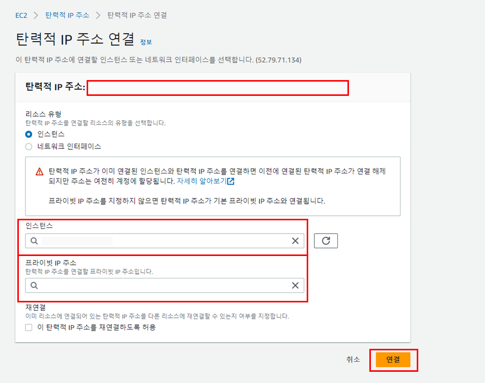 ๋ณด์ ์ ๊ฐ๋ ธ๋๋ฐ ํ๋ ฅ์ IP ์ฃผ์๊ฐ ํ์๋๊ณ ์ธ์คํด์ค์ ํ๋ผ์ด๋น IP์ฃผ์๋ฅผ ์ ํ ํ ์ฐ๊ฒฐ ์ ํ
