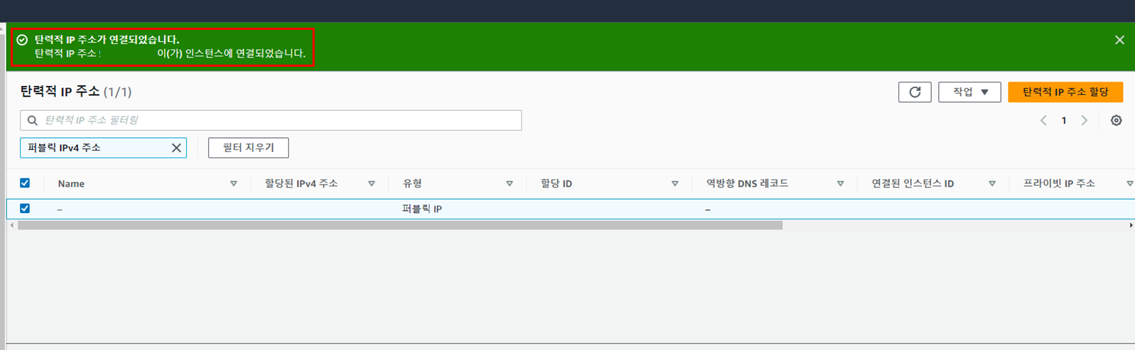 ํ๋ ฅ์ IP์ฃผ์๊ฐ ํ ๋น ๋์๊ณ ์ด๋ฅผ ์ด์ ์ธ์คํด์ค์ ์ฐ๊ฒฐํด์ผ ํ๋ค.