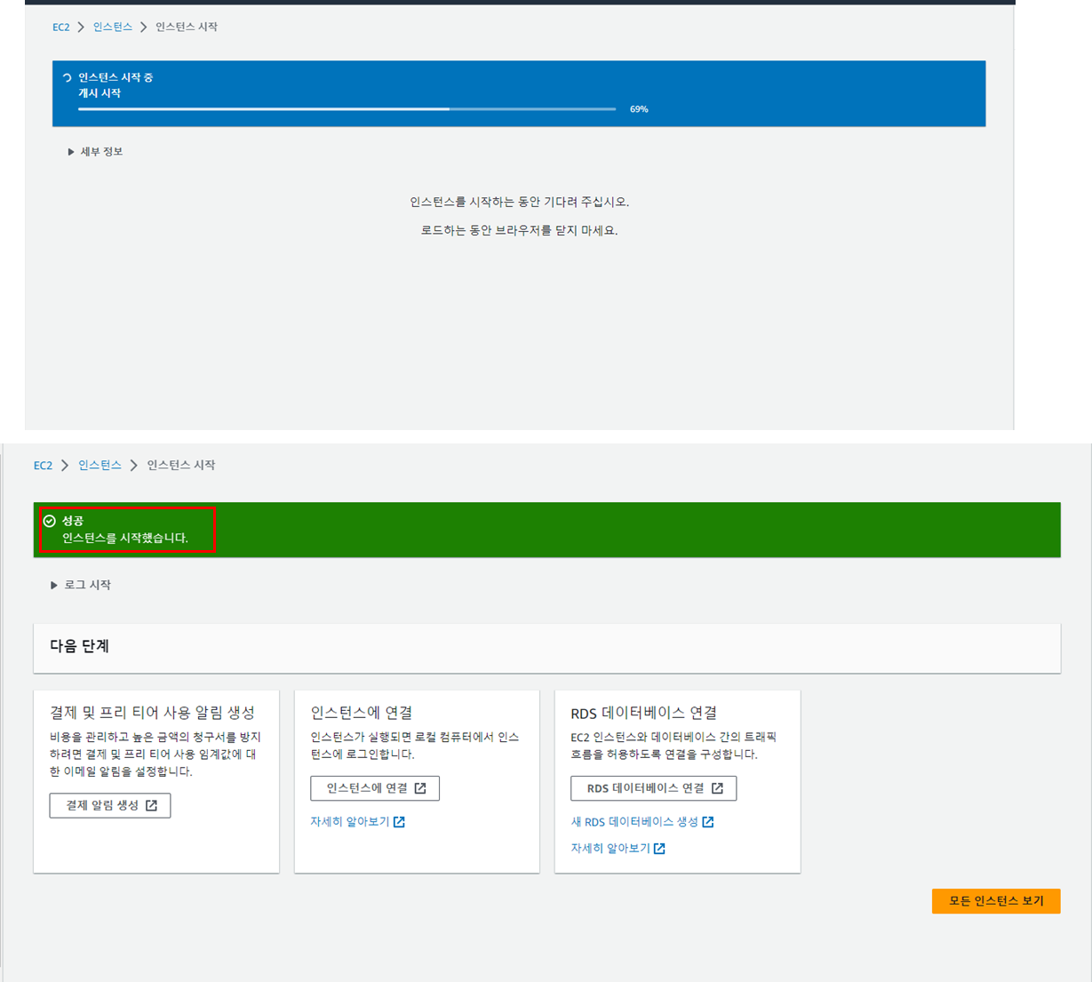 ์ธ์คํด์ค๊ฐ ์ ์์ ์ผ๋ก ์์๋์๋ค.