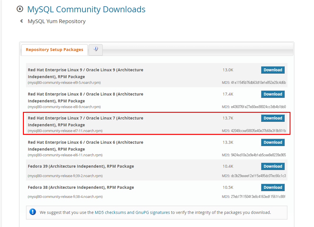 MySQL :: Download MySQL Yum Repository