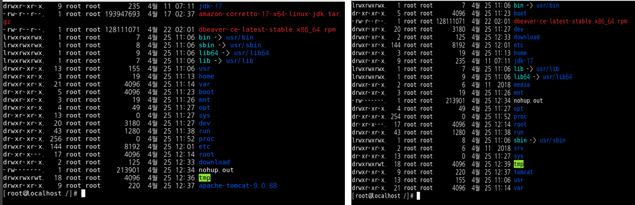 tar xvf tomcat ์์ถํ์ผ๋ช ์ผ๋ก ์์ถ ํ๊ณ mv๋ช ๋ น์ด๋ก ํด๋๋ช ์ ๋ณ๊ฒฝํ๋ค.