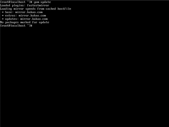 yum update๋ฅผ ํด์ ์ต์ ์ผ๋ก ์ ๋ฐ์ดํธํ๋ค.