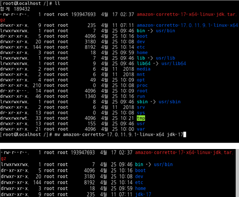 mv ๋ช ๋ น์ด๋ก jdk-17๋ก ํด๋๋ช ์ผ๋ก ๋ณ๊ฒฝํ๋ค.