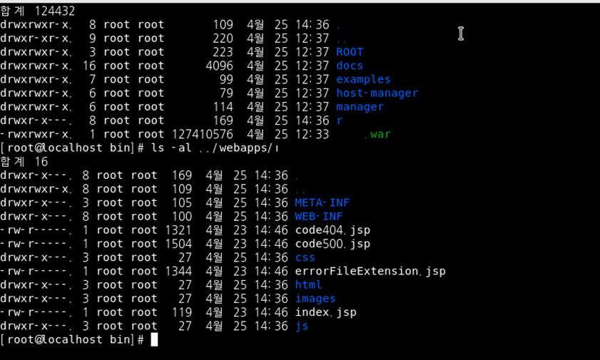 tomcat/webapps/warํ์ผ์ด ์์ถ ํด์ ๋ ๊ฒ์ ํ์ธํ ์ ์๋ค.