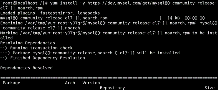 yum install -y https://dev.mysql.com/get/mysql80-community-release-el7-11.noarch.rpm
