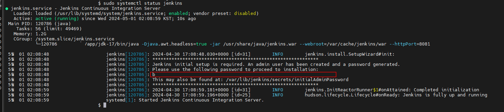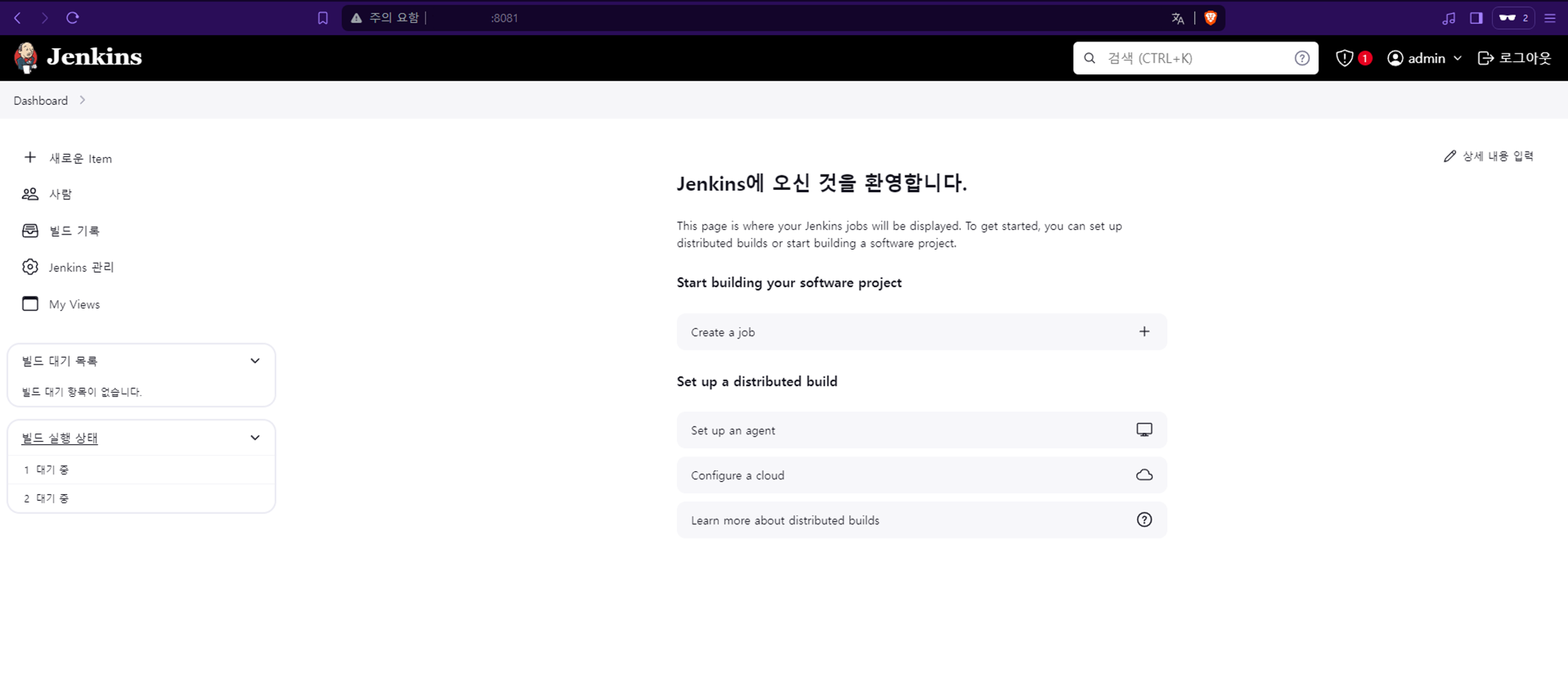 ๊ทธ ํ ๋ค์ jenkins ์๋น์ค๋ฅผ ์์ ํ ์ํ๋ฅผ ๋ณด๋ฉด ์๋์ฒ๋ผ 8081 ํฌํธ๋ก ์ ์์ ์ผ๋ก running์ด ๋ ๊ฑธ ๋ณผ ์ ์์๋ค.