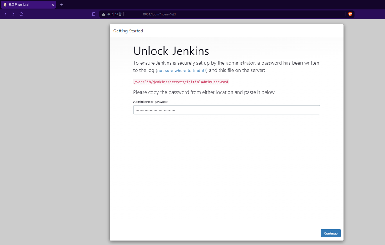 jenkins ์ต์ด์คํ ์ root ์์ ๋น๋ฐ๋ฒํธ๊ฐ ์ค์ท์ฒ๋ผ ๋ก๊ทธ์ ํ์ถ๋๋๋ฐ ์ด๋ฅผ ์ด์ฉํด์ ๋ธ๋ผ์ฐ์ ์์ ๋ก๊ทธ์ธ ํ๋ค.
