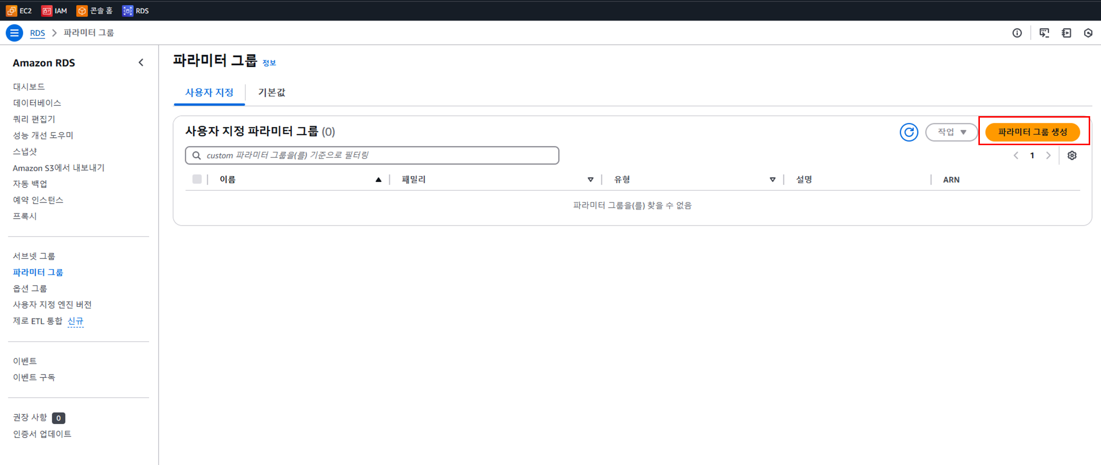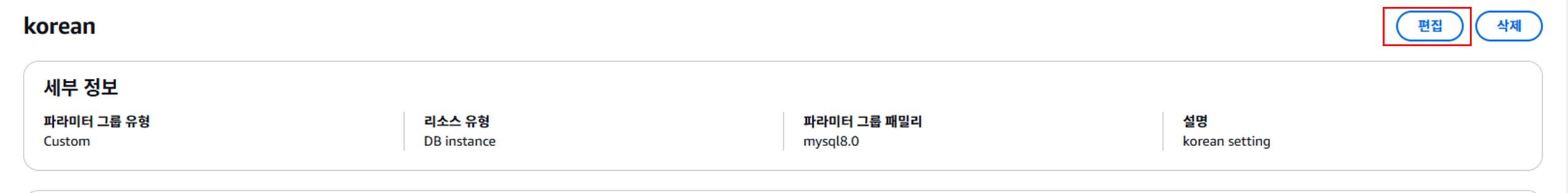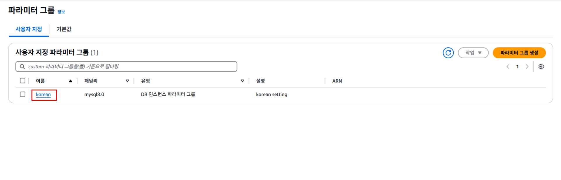 ์๋ ๋ถ๋ถ์ ๋ฐ์ดํฐ๋ฒ ์ด์ค ์ต์ ์ DB ํ๋ผ๋ฏธํฐ ๊ทธ๋ฃน์์ ์๊น ๋ง๋ ํ๋ผ๋ฏธํฐ ๊ทธ๋ฃน์ผ๋ก ๋ณ๊ฒฝ ํ ๊ณ์์ ๋๋ฅธ๋ค.