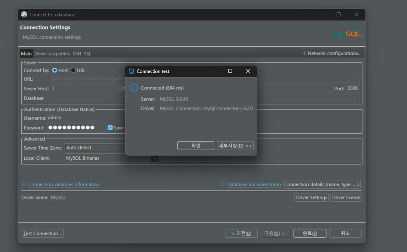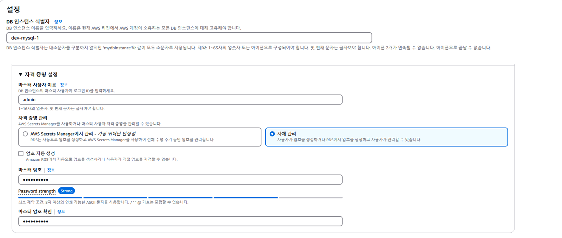 ์ค์ ์์ DB ์ธ์คํด์ค ์๋ณ์ ์ ๋ ฅ ํ ์๊ฒฉ ์ฆ๋ช ์ค์ ์์ ๋ง์คํฐ ์ฌ์ฉ์ ์ด๋ฆ ์ ๋ ฅ