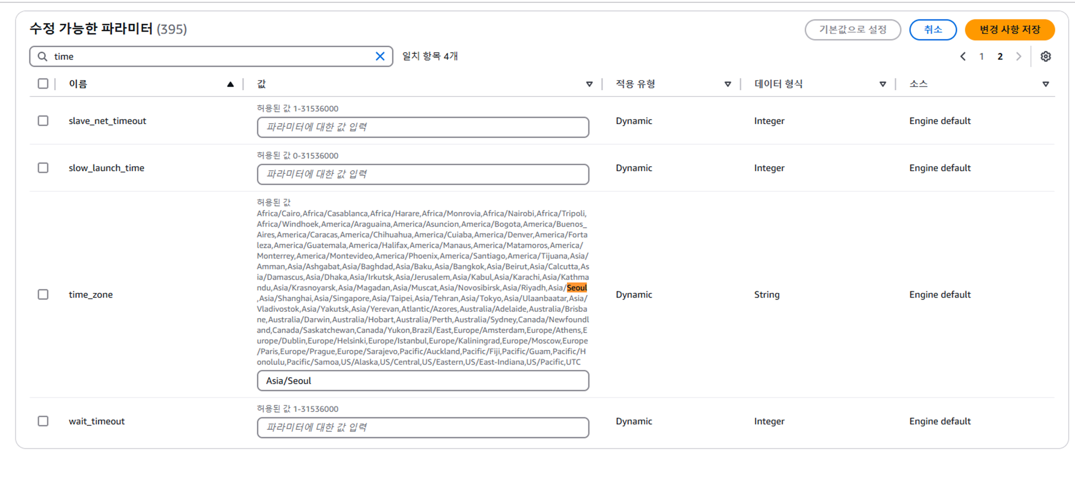 "time" ์ ๋ ฅ ํ ๋์ค๋ ์๋ ํญ๋ชฉ์ ๊ฐ์ Asia/Seoul๋ก ์ ๋ ฅํ๋ค.