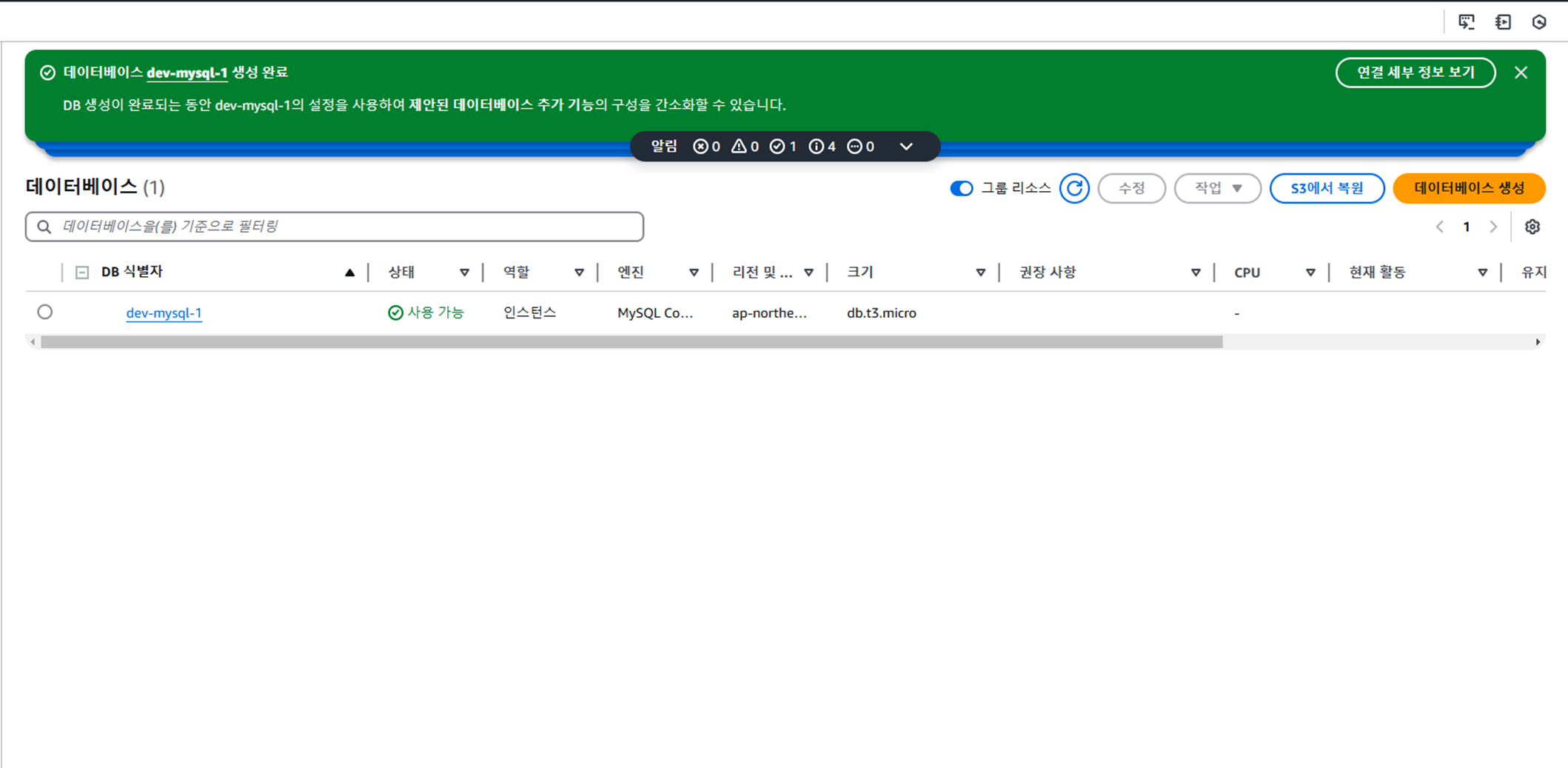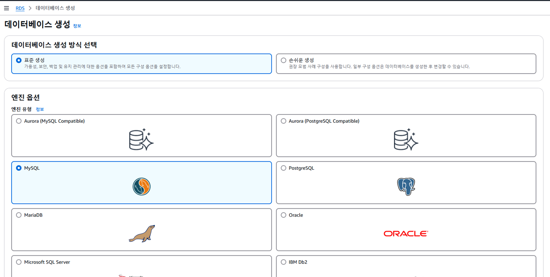 IAM ๊ณ์ ์ผ๋ก RDS ๋ฉ๋ด์ ์์ ๋ฐ์ดํฐ๋ฒ ์ด์ค ์์ฑ์ ์ ํํ๋ค.