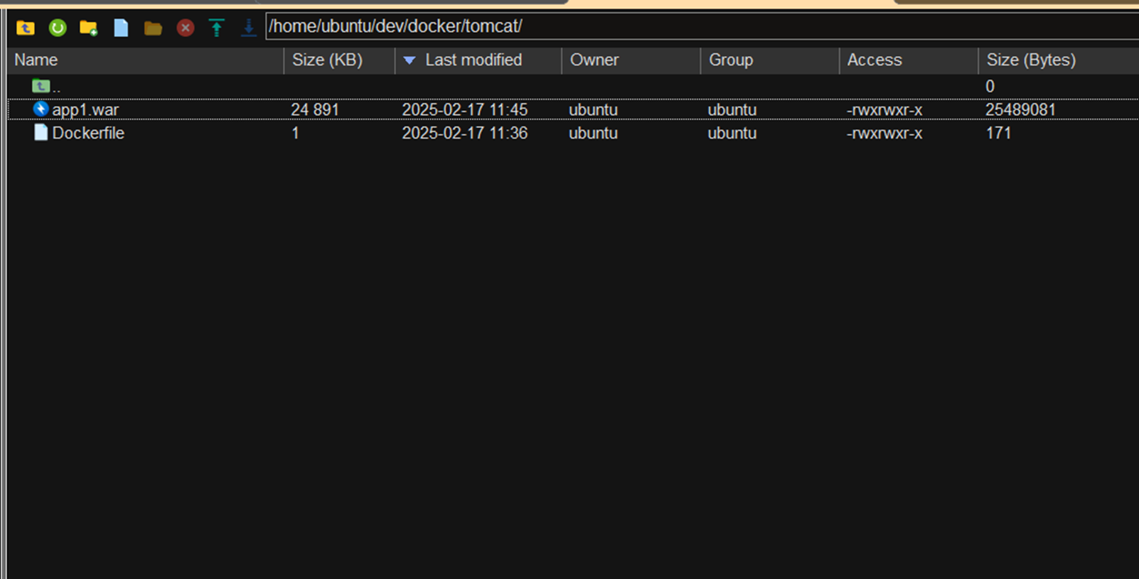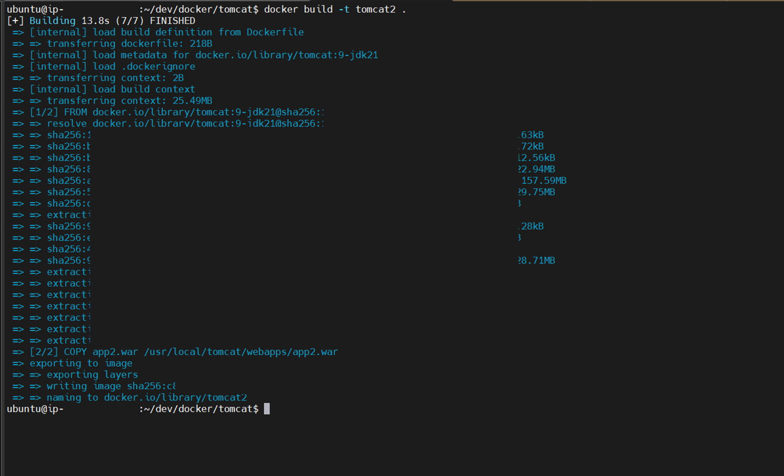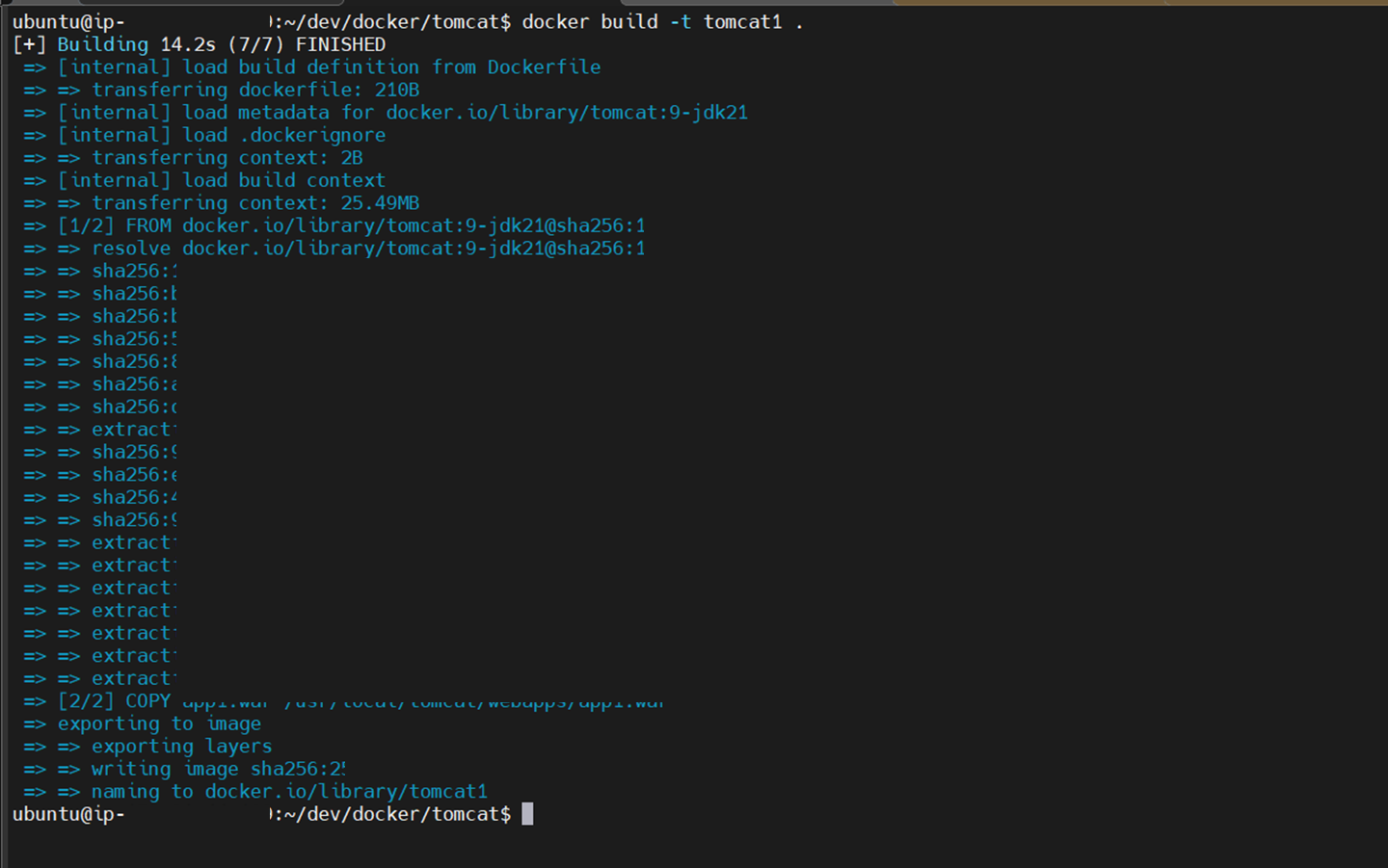 tomcat ์ด๋ฏธ์ง ๋น๋ ํ ์ญ์ warํ์ผ์ ๋ฐฐํฌ๊ฒฝ๋ก์ ์ฎ๊ธด ๋ค ์คํํ๋ค.