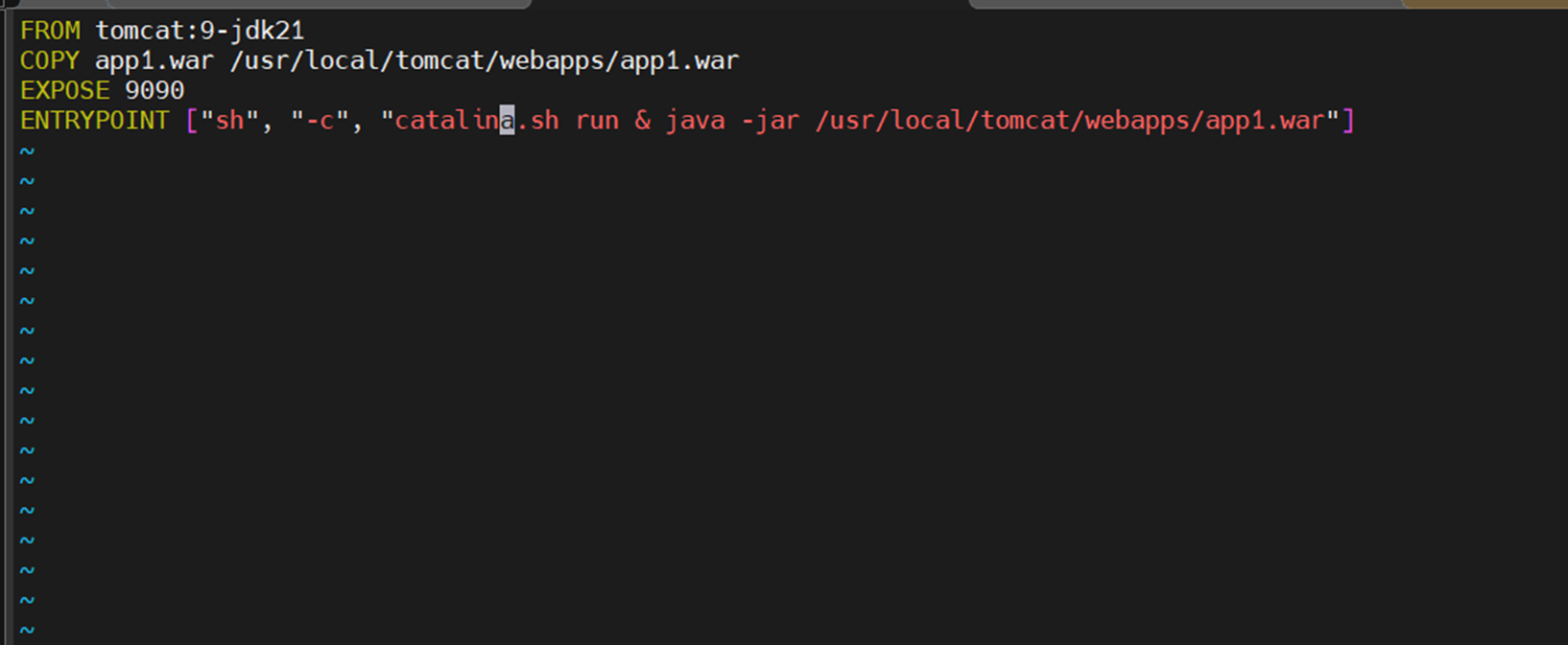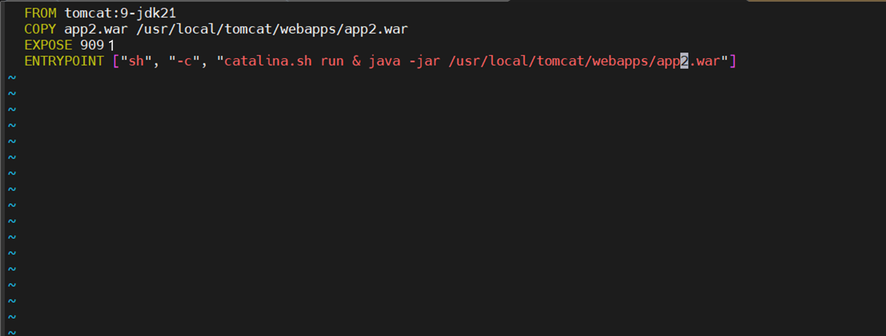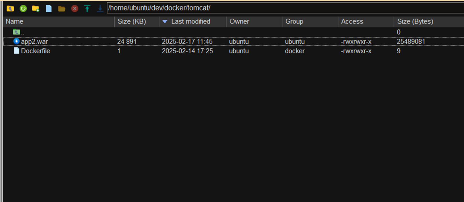 tomcat ์ด๋ฏธ์ง ๋น๋ ํ ์ญ์ warํ์ผ์ ๋ฐฐํฌ๊ฒฝ๋ก์ ์ฎ๊ธด ๋ค ์คํํ๋ค.