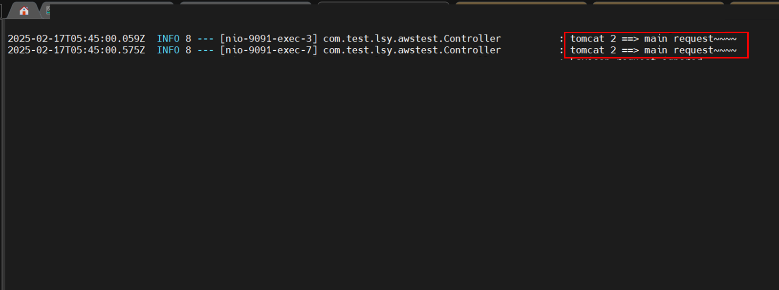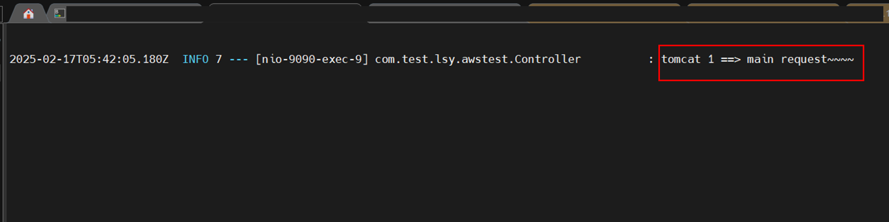๋ธ๋ผ์ฐ์ ์์ 1๋ฒ EC2 ์ธ์คํด์ค์ public ip๋ฅผ ํธ์ถ ํ์ ์ tomcat1,2๋ฒ์ ๋ก๊ทธ๊ฐ ๋ฒ๊ฐ์๊ฐ๋ฉฐ ์ถ๋ ฅ๋์ด์ผ ํ๋ค.