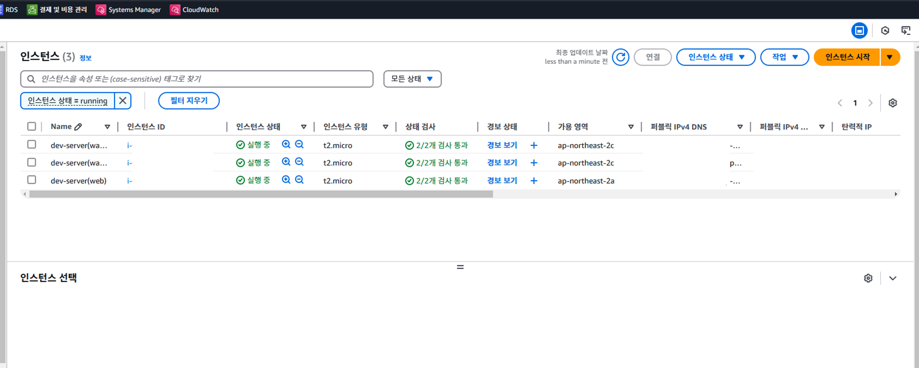 ๋ฒ์ 1์์๋ Web, WAS1,2๋ฒ์ ํ๋์ EC2 ์ธ์คํด์ค์์ Docker compose๋ก ๊ด๋ฆฌํ์ง๋ง