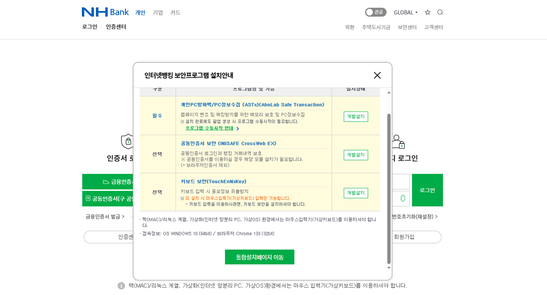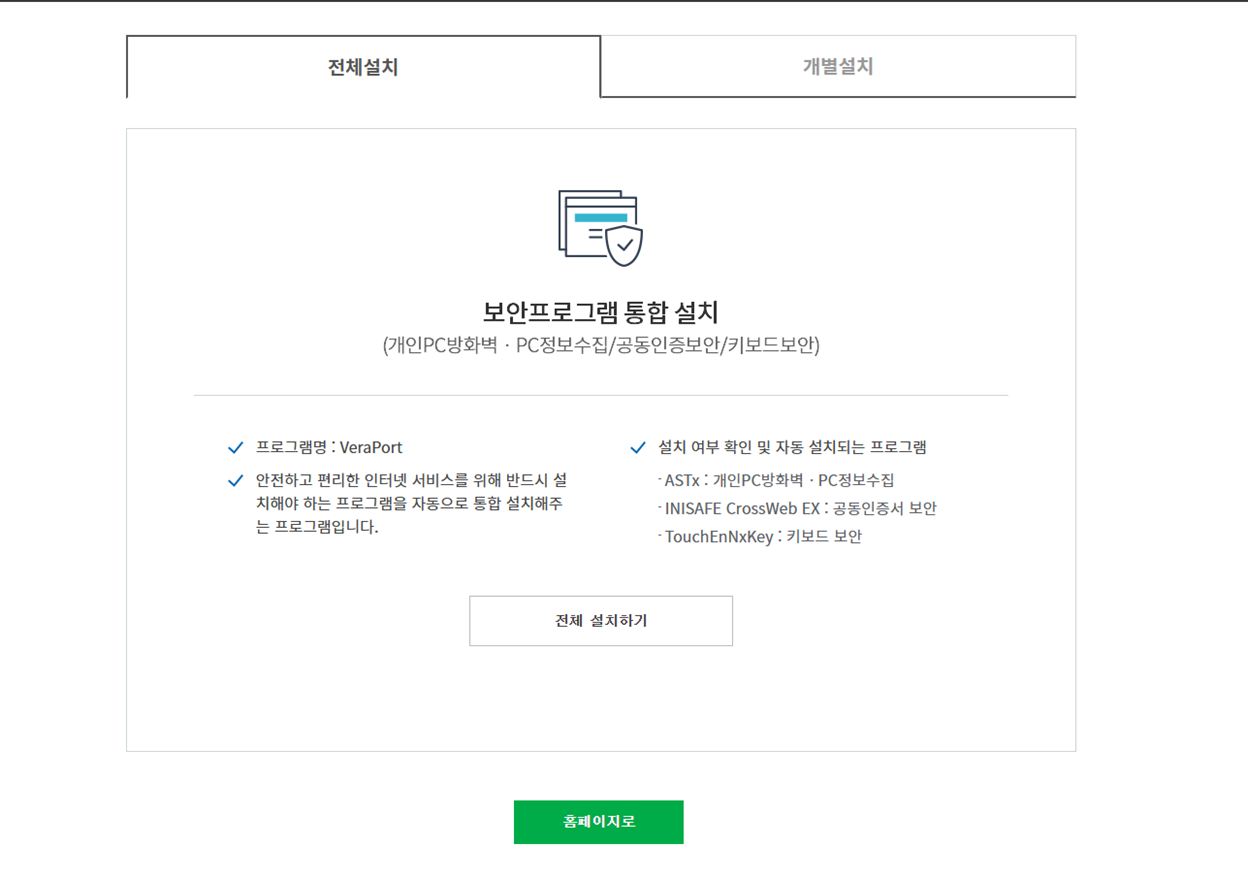 ๋ก๊ทธ์ธ ์๋ํ๋๋ฐ ๋ณด์ ํ๋ก๊ทธ๋จ ์ค์นํ๋ผ๊ณ ๋์ค๋ฉด ์ค์น๋ฅผ ์งํํ๋ค.