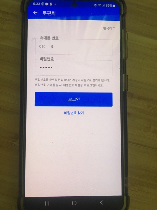 ํด๋ํฐ๋ฒํธ ๋ค 8์๋ฆฌ์ ๋น๋ฐ๋ฒํธ๋ฅผ ์ ๋ ฅ ํ ๋ก๊ทธ์ธ ํ๋ค.