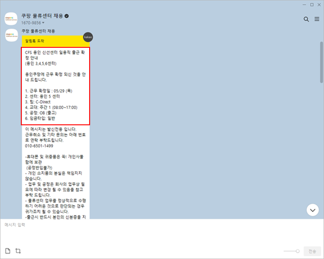 - ๊ณ ๊ฐ์ผํฐ ์ชฝ์ “์ฒซ ์ถ๊ทผ”์์ ์๋ฆผ → ์์ ๊ต์ก ํ ๊ณต์ ๋ด๋น์๊ฐ ์ ๋ฌด ์ธ๊ณ
