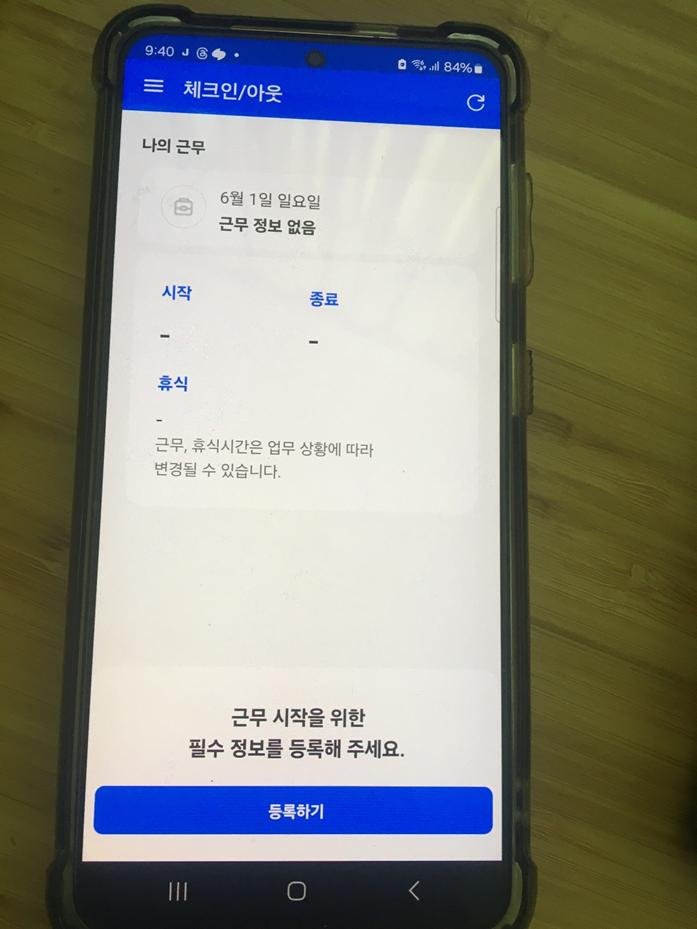 ์ ํ๋ฉด์ฒ๋ผ ๋ณดํต ๊ทผ๋ฌด์ผ ์ ๋ ์ถ๊ทผ ํ์ ์นดํก์ด ์์ผ ์ถ๊ทผํ ์ ์๋ค.