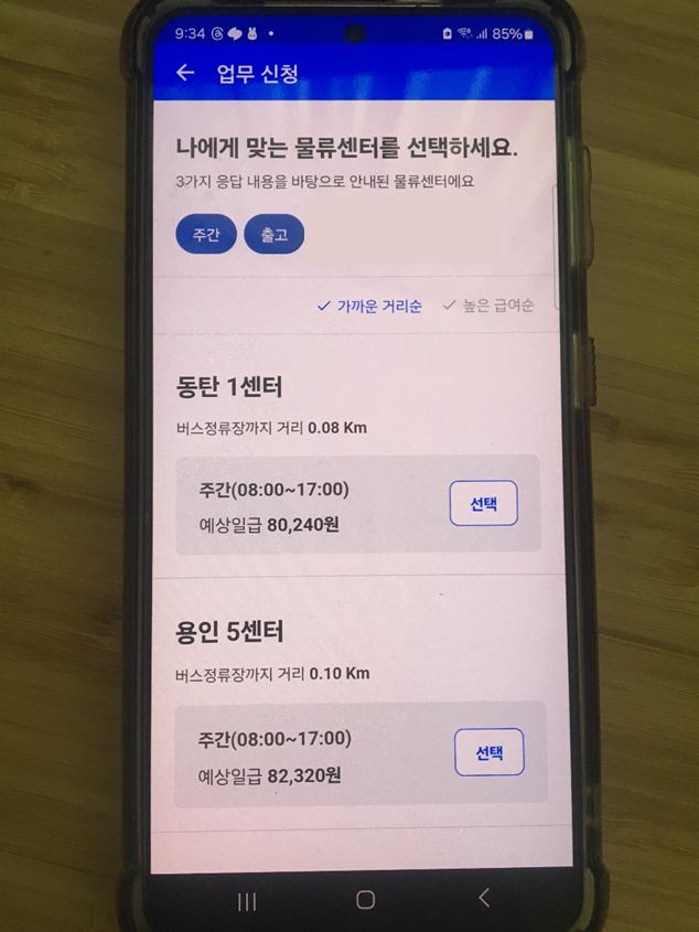 ์ฒ์ ์ ์ฒญ ์์๋ ์ฉ์ธ 3์ผํฐ๋ฅผ ์ ํํ๊ณ ๋ ๋ฒ์งธ ๊ทผ๋ฌด์๋ 5์ผํฐ๋ฅผ ์ ํํ๋ค.